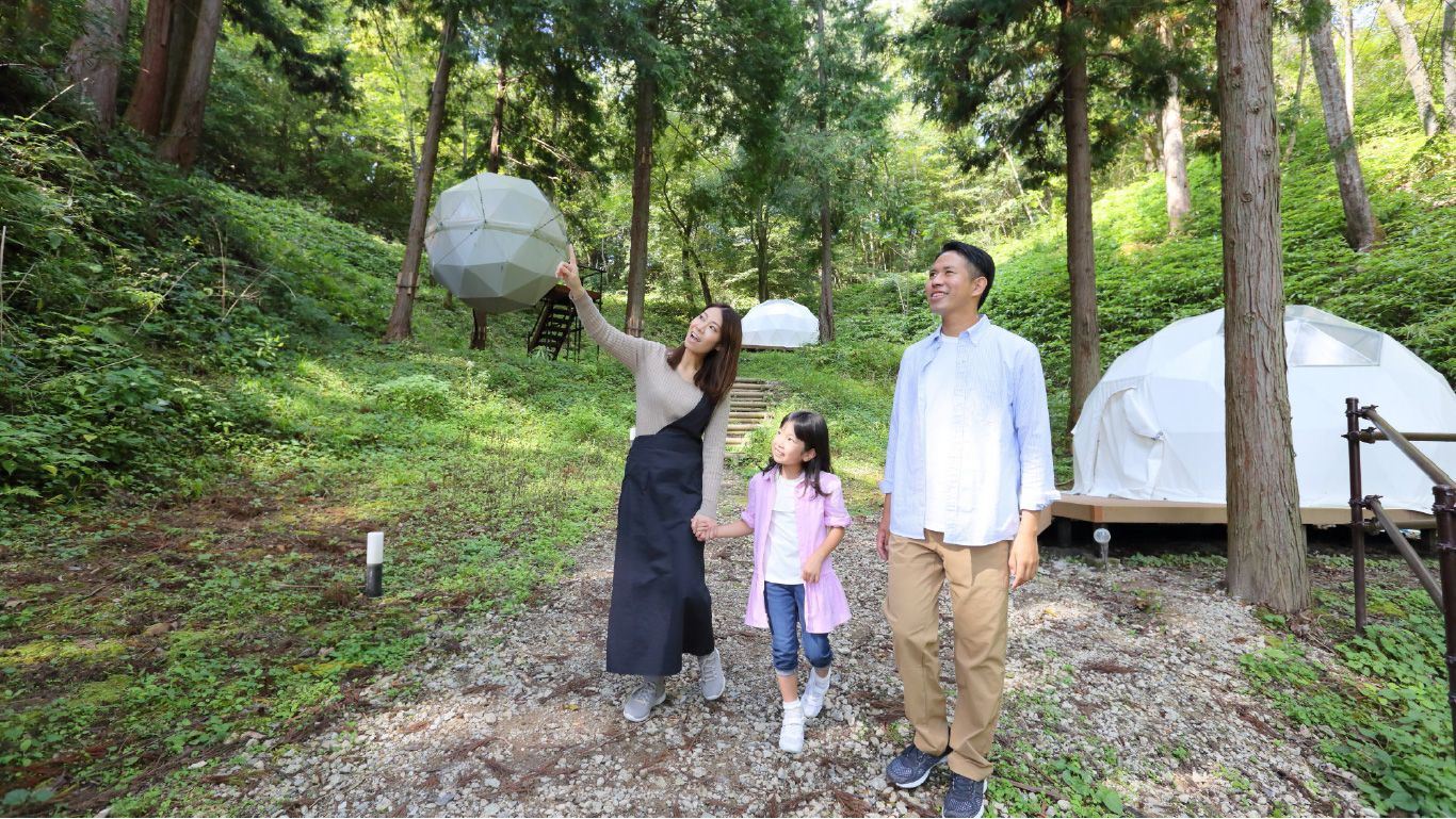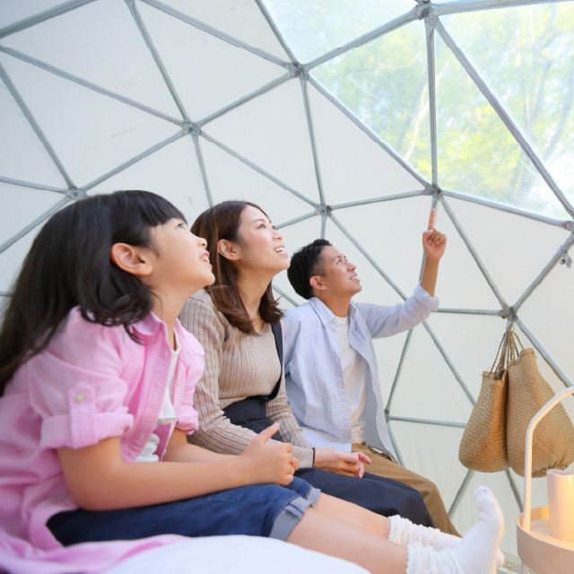 グランピングや日帰り温泉、宿泊など、自然の中で非日常を感じる特別な体験が楽しめる宿泊施設です。ペットと泊まれるコテージもあります。