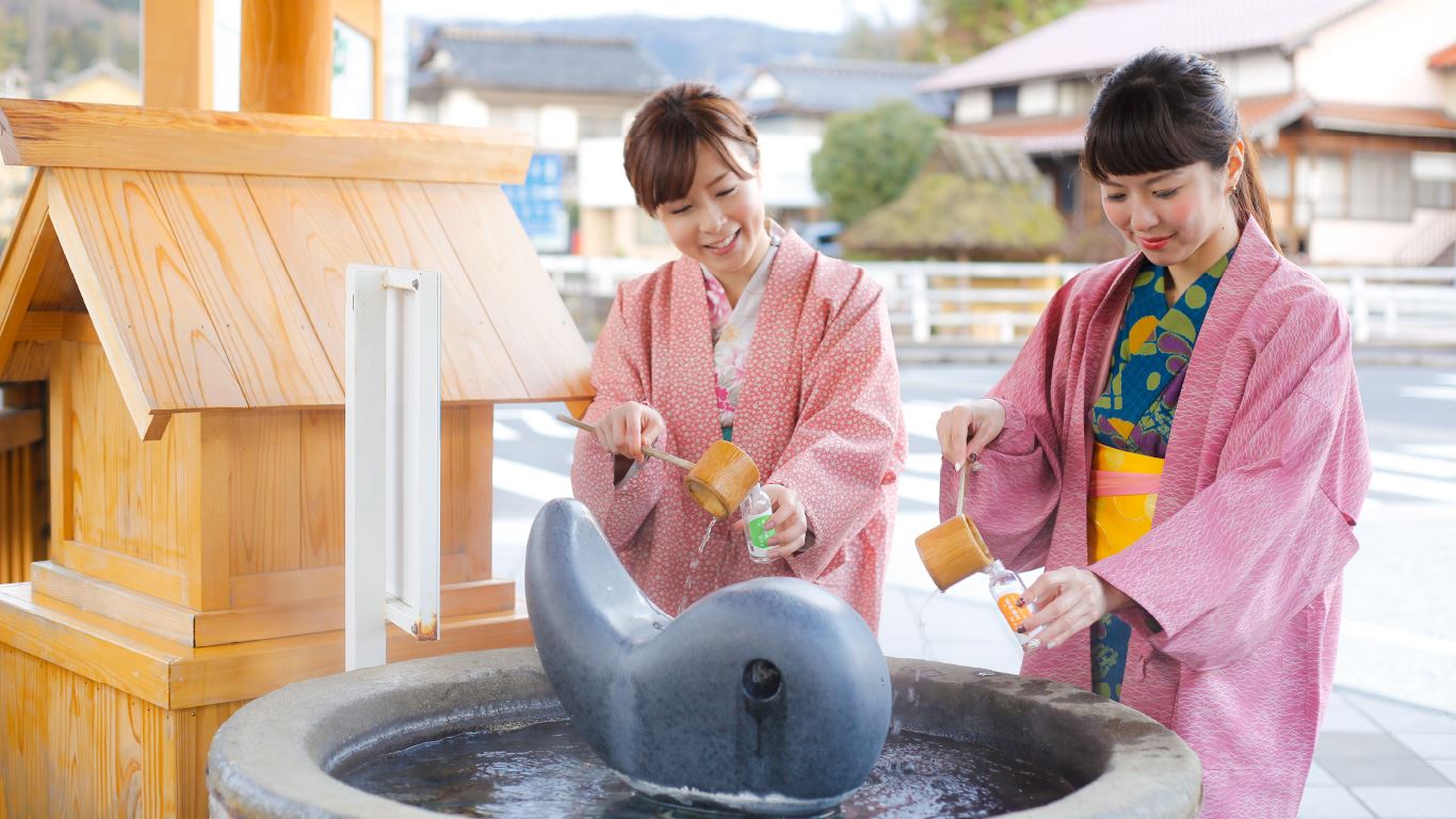 湧き出る“天然の化粧水”と呼ばれており、製薬会社の科学的な分析により泉質が高級化粧水レベルであることが分かりました。特に優れているのが潤い効果です。1本200円で売られている専用ボトルにお土産としてもお持ち帰りいただけます。