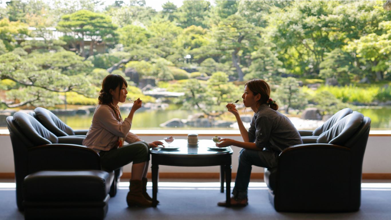 庭園を見ながらほっと一息つき、旅の疲れを癒してください。