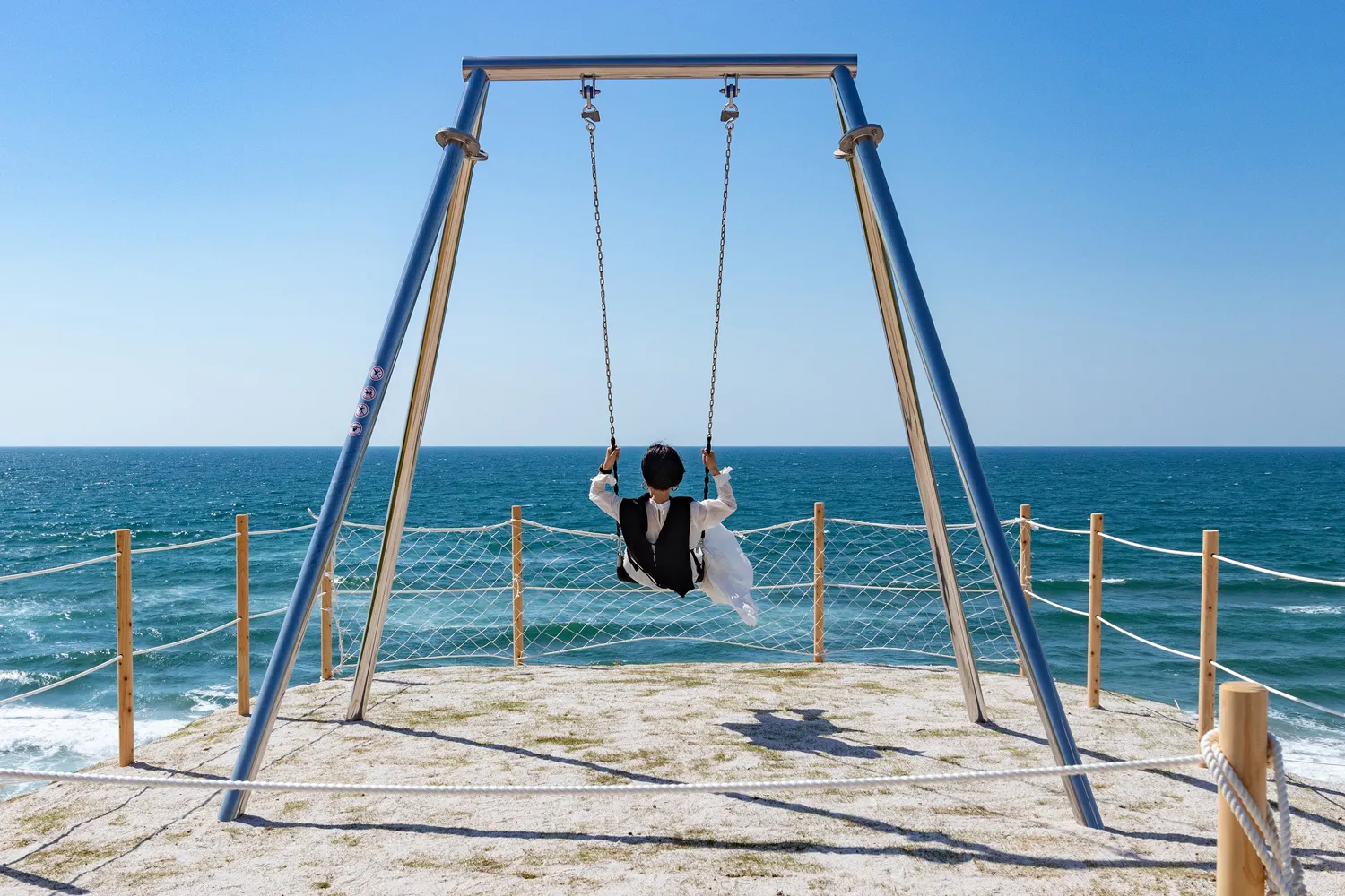 海に向かって設置されたブランコで、まるで空中に飛び出すような感覚を味わえます。