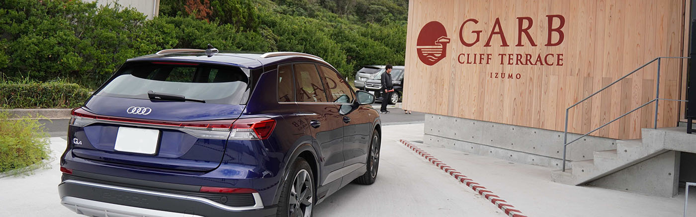 出雲空港から車で約35分。EV用の充電器を備え、施設をご利用のお客様やアウディにお乗りのお客様は無料で充電できるサービスを実施しています。プレシェアでレンタルできるEV、Audi